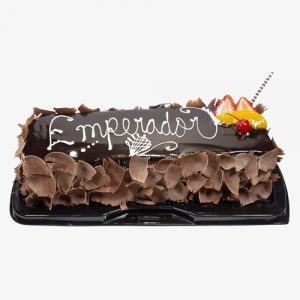 Pan de chocolate relleno de durazno fresa bañado en jarabe