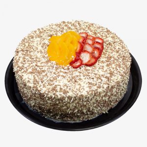 Pan de vainilla relleno de durazno y nuez bañado en 3 leches