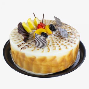 Pan de vainilla relleno de nuez durazno bañado en 3 leches