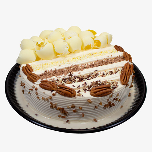 Trufa de chocolate blanco, relleno de galleta oreo, hojaldre a la mantequilla, queso horneado, flan napolitano y base de pan de vainilla