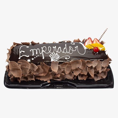 Pan de chocolate relleno de durazno fresa bañado en jarabe